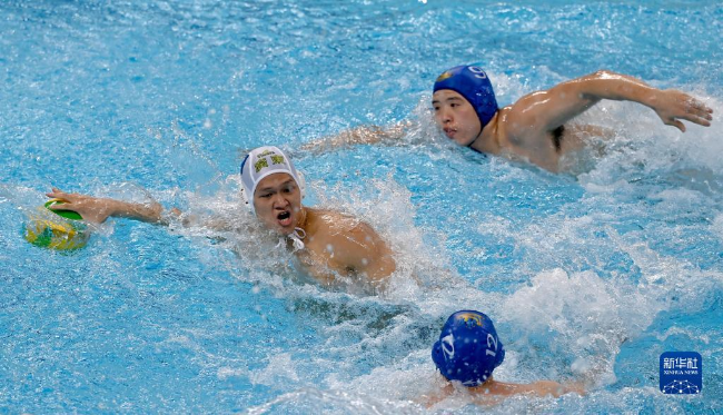 在陜西省寶雞市舉行的第十四屆全運(yùn)會(huì)男子水球金牌賽中,廣東隊(duì)以12比8戰(zhàn)勝上海隊(duì),獲得金牌。