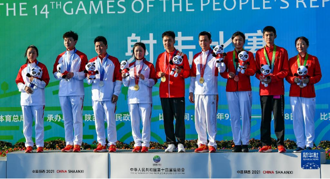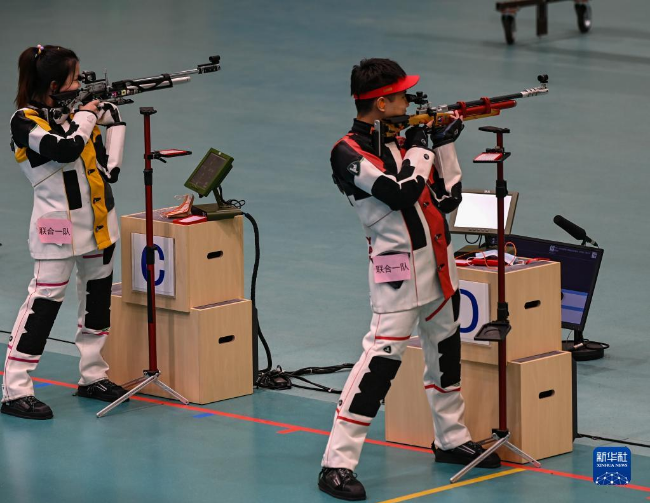 當(dāng)日,在西安進行的第十四屆全運會射擊10米氣步槍混合團體決賽中,聯(lián)合一隊選手楊倩/楊皓然以總分17分的成績獲得金牌,浙江二隊選手王芝琳/王岳豐和聯(lián)合二隊選手張雨/盛李豪分獲銀牌、銅牌。