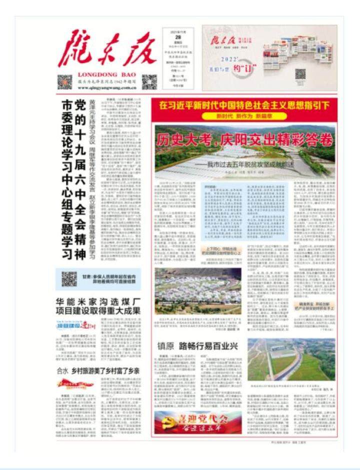 慶陽是甘肅唯一的革命老區(qū),屬六盤山集中連片特困區(qū),貧困程度深、脫貧難度大。過去的5年,全市強根基、補短板、抓難點、興產(chǎn)業(yè)、促就業(yè),一項項扶貧措施落實落地,精準發(fā)力;一批批扶貧干部盡銳出戰(zhàn),扎根貧困一線,想對策、出點子,因戶施策、攻堅克難,貧困群眾脫貧圓夢,與全國人民一道邁入小康。