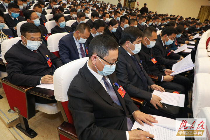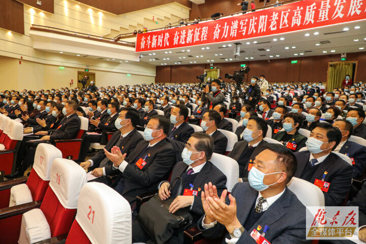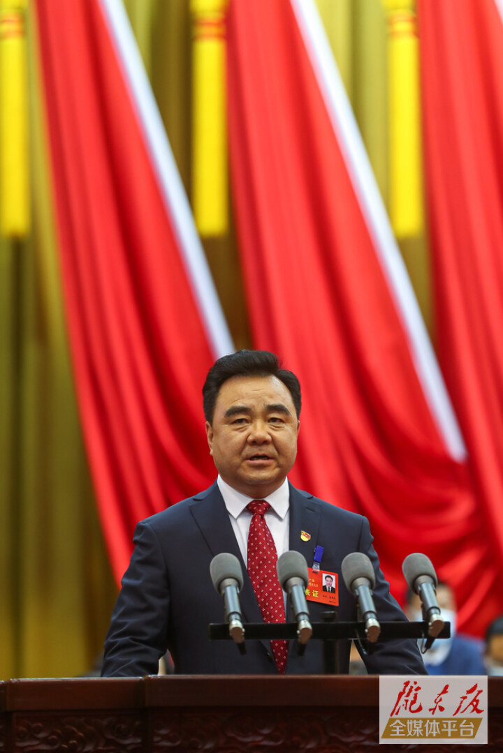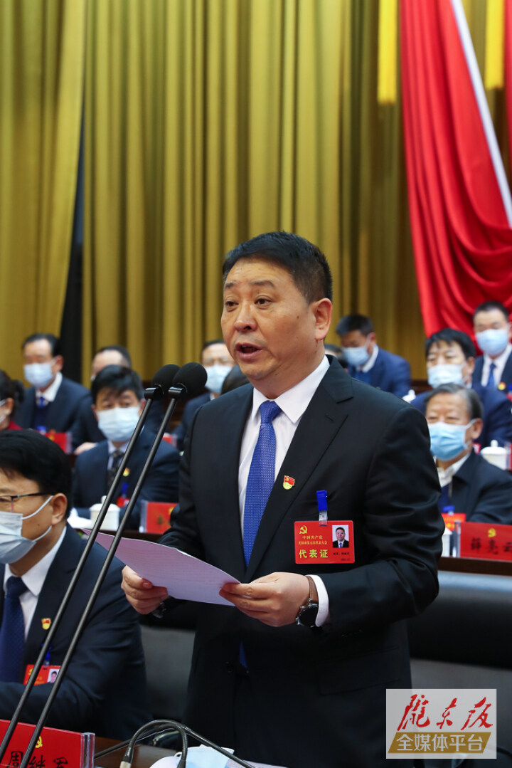 黃澤元代表中國(guó)共產(chǎn)黨慶陽(yáng)市第四屆委員會(huì)作報(bào)告。