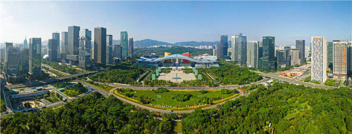 這是深圳市民中心和蓮花山公園一線(2020年10月2日攝,無人機照片)。新華社記者 梁旭 攝