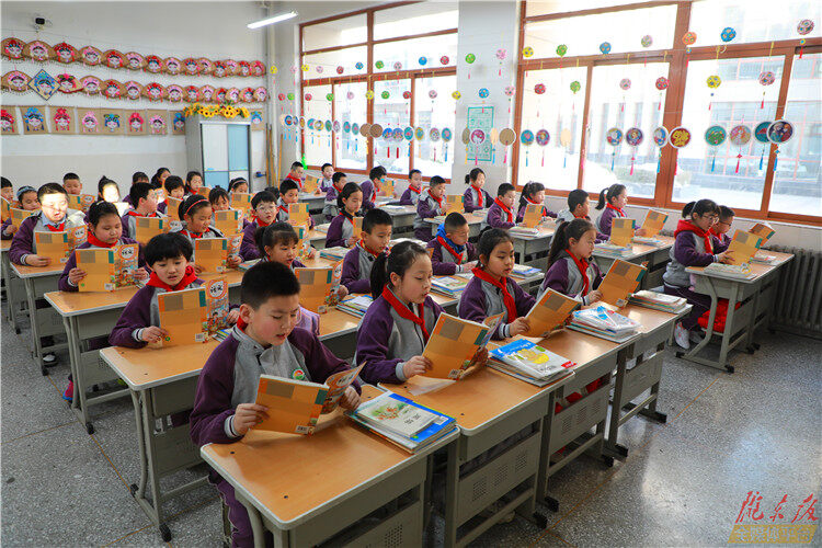 ↑慶陽市東方紅小學的學生們正在朗讀課文。