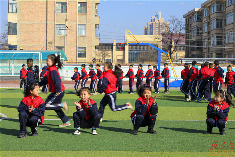↑西峰區(qū)新建小學的學生正在進行課間活動。