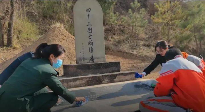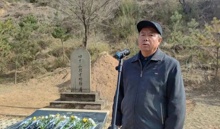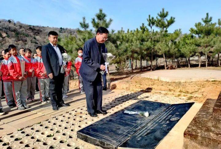 活動(dòng)中,大家擦拭墓碑,修整松林,清除雜草,用這種簡(jiǎn)單而樸實(shí)的方式,緬懷祭奠革命英魂。緊接著全體人員莊嚴(yán)肅立,紛紛向?yàn)閯?chuàng)建陜甘邊革命根據(jù)地而英勇獻(xiàn)身的英烈們獻(xiàn)花致敬、鞠躬默哀,真切表達(dá)了他們緬懷哀思敬慕之情。烈士后代郝生虎及講解員鄒瑜還現(xiàn)場(chǎng)講述了李青山等閻洼子四十二烈士故事和劉懋功將軍革命一生的光輝足跡。