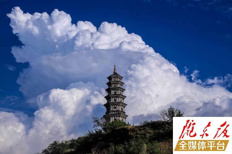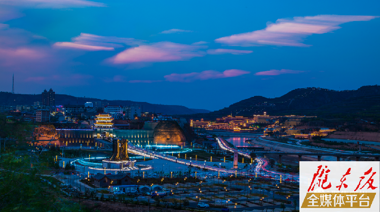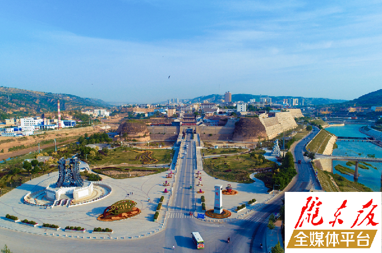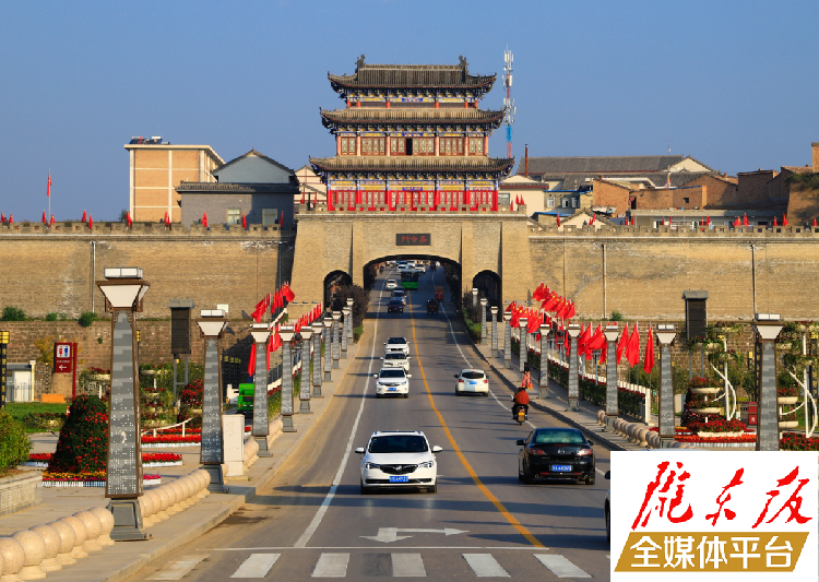 “飛天舞動絲路”拍攝組走進慶城縣,南門也成了網(wǎng)紅打卡地(2021年9月12日攝)。