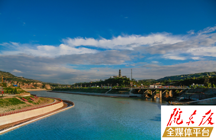 慶城縣南門清澈的河水與藍天白云相映,水天一色(2017年9月25日攝)。