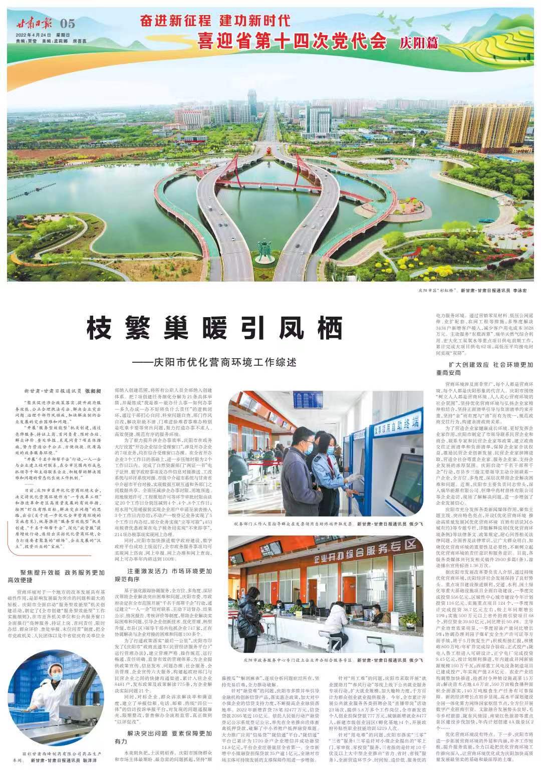 據(jù)慶陽市發(fā)展改革委負責(zé)人介紹,通過持續(xù)優(yōu)化營商環(huán)境,慶陽經(jīng)濟社會發(fā)展保持了良好勢頭。重點項目建設(shè)推進順利,交通、水利、國土綠化等重大基礎(chǔ)設(shè)施項目全面啟動建設(shè),一季度完成投資556億元,區(qū)域性中心城市建設(shè)今年計劃投資116億元、實施重點項目124個,一季度預(yù)計完成投資38.7億元左右,較上年同期增長10%;實施500萬元以上省外招商引資項目68個,到位資金39.93億元,同比增長50.4%。主導(dǎo)產(chǎn)業(yè)培育效果明顯,一季度原油產(chǎn)量同比增長5%;協(xié)調(diào)辦理劉園子煤礦安全生產(chǎn)許可證等方面手續(xù),將于5月恢復(fù)生產(chǎn);積極銜接匯報,核桃峪800萬噸/年礦井完成綜合驗收,正式投產(chǎn);隴電入魯工程進入可研設(shè)計,正寧電廠完成投資9.45億元,按計劃順利推進,年內(nèi)建成并網(wǎng)新能源規(guī)模160萬千瓦;西部重工風(fēng)電設(shè)備制造項目已建成投產(chǎn),年實現(xiàn)產(chǎn)值2.8億元。農(nóng)業(yè)產(chǎn)業(yè)結(jié)構(gòu)調(diào)整加快推進,搶抓時令種植設(shè)施蔬菜15萬畝;解決苗木占地4.6萬畝,590萬畝糧食播種面積全面落實,140萬噸糧食生產(chǎn)任務(wù)有可靠保障。新的經(jīng)濟增長點初步顯現(xiàn),高水平謀劃建設(shè)全國一體化算力網(wǎng)絡(luò)國家樞紐節(jié)點,全方位開展數(shù)字產(chǎn)業(yè)招商引資。文旅融合發(fā)展勢頭良好,毛寺鄉(xiāng)村旅游、隴東風(fēng)情園、南梁紅色旅游等重點景區(qū)建設(shè)步伐加快,年內(nèi)計劃創(chuàng)建4A級景區(qū)2個……