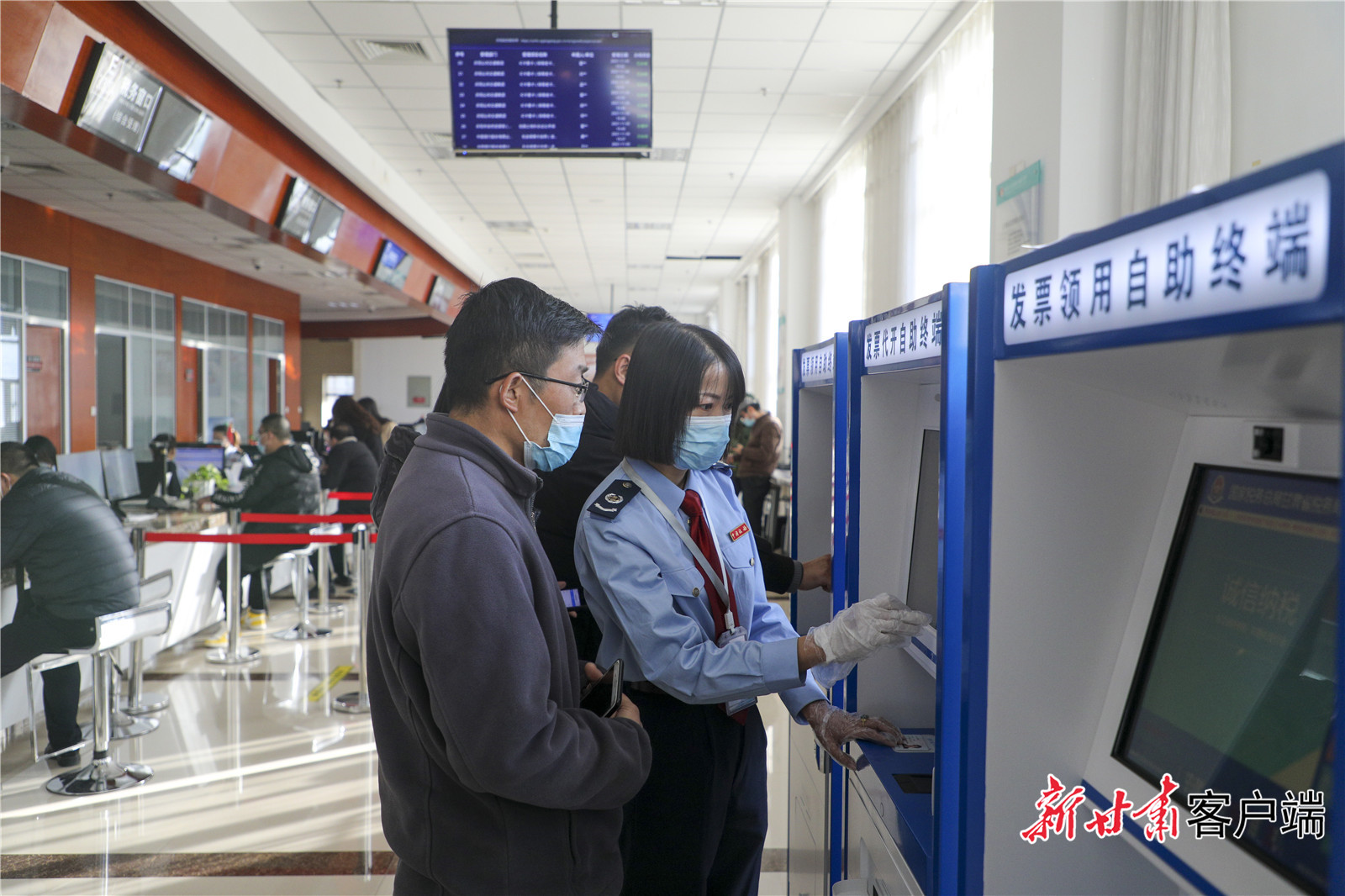 稅務(wù)部門工作人員指導(dǎo)群眾在發(fā)票領(lǐng)用自助終端開取發(fā)票。新甘肅·甘肅日報通訊員 俄少飛