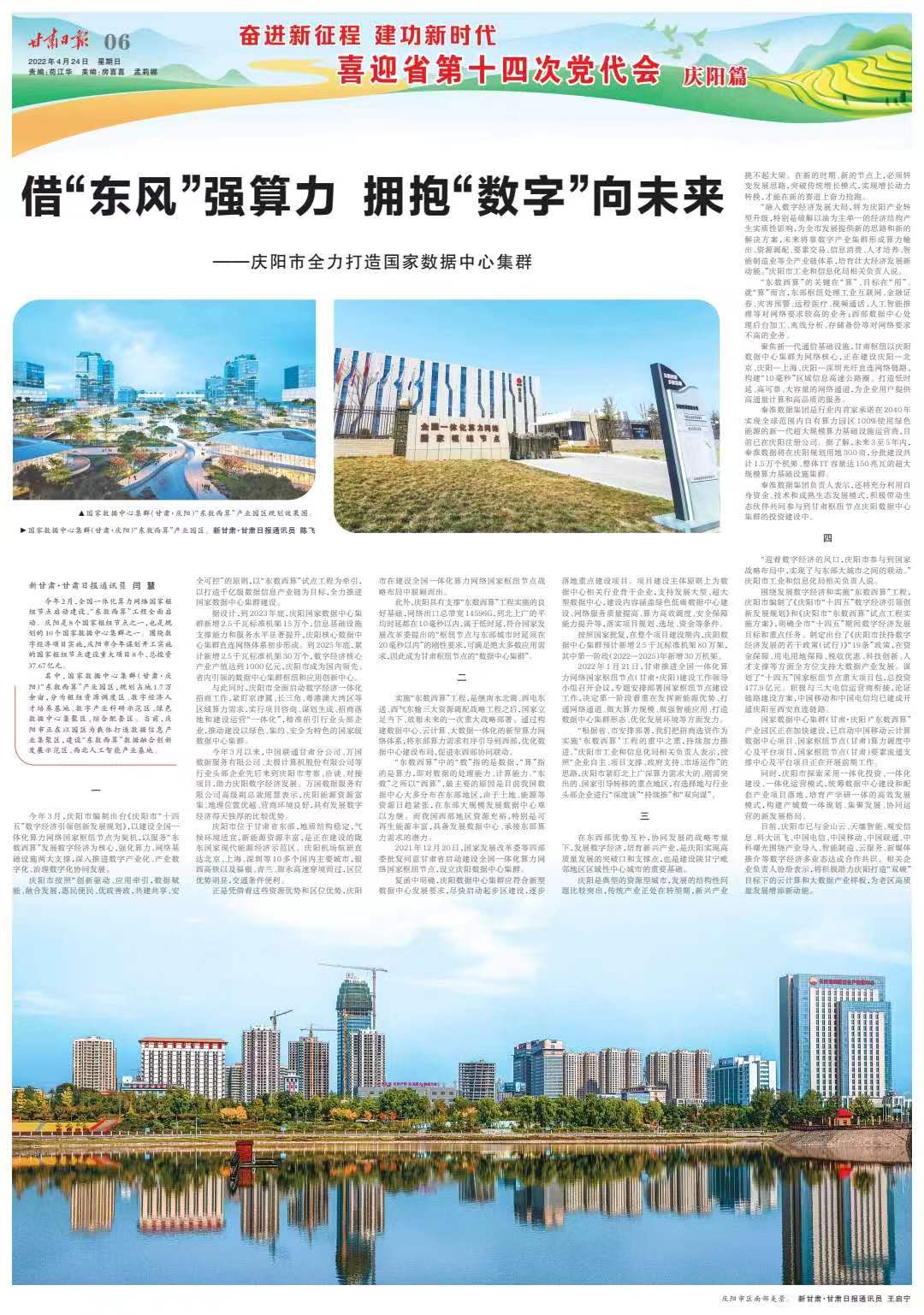 2021年12月20日,國家發(fā)展改革委等四部委批復同意甘肅省啟動建設全國一體化算力網(wǎng)絡國家樞紐節(jié)點,設立慶陽數(shù)據(jù)中心集群。