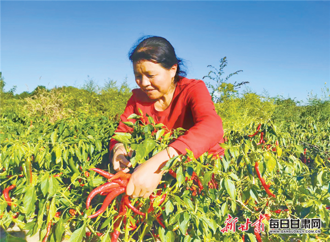 靈臺(tái)縣西屯鎮(zhèn)小村村菜農(nóng)在采摘辣椒。