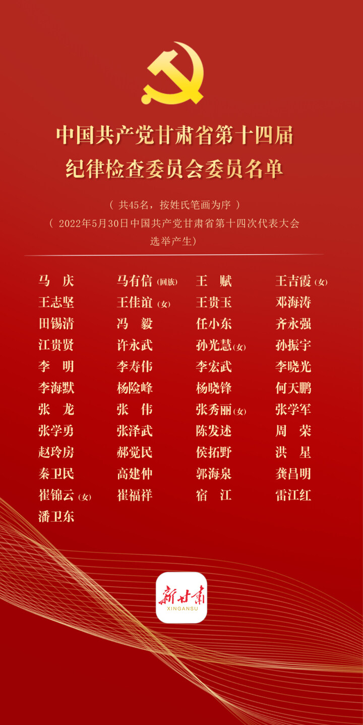 中國共產(chǎn)黨甘肅省第十四屆紀律檢查委員會委員名單