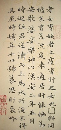 書法作品,臨曹娥碑。碑文上記載了浙江百姓們在五月初五紀念濤神伍子胥的情景。也許沒人想得到,對悲劇人物伍子胥的紀念活動又引出了另一個關于端午節(jié)的悲劇傳說。