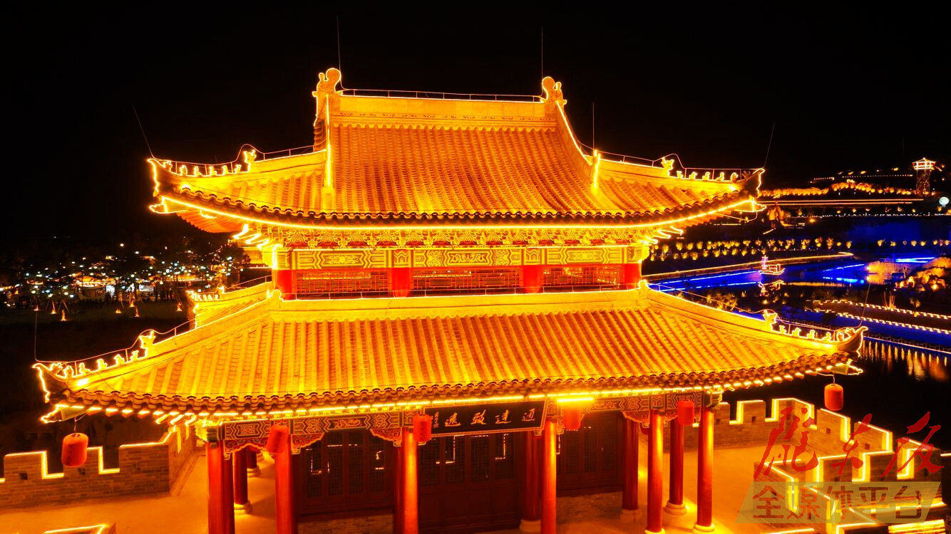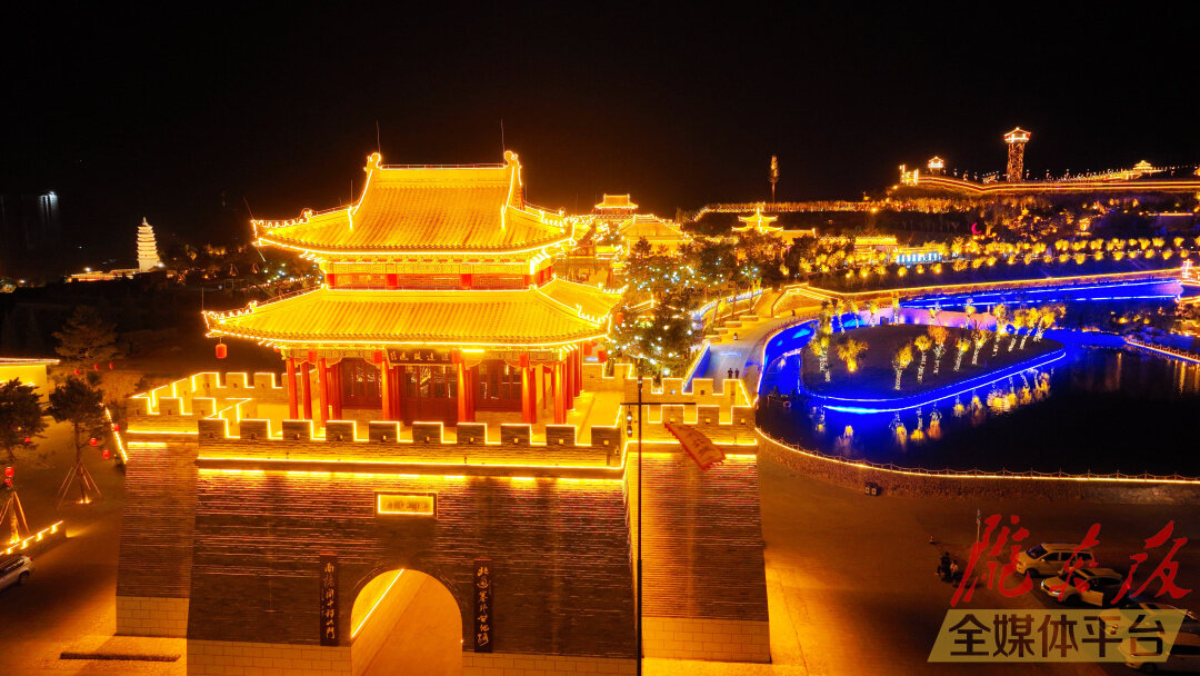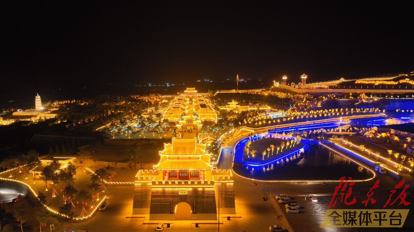 夜幕降臨,華燈初上,環(huán)州故城燈火通明,璀璨輝煌,宛若天宮仙境。6月2日,攝影師用無(wú)人機(jī)航拍了環(huán)州故城各個(gè)角度的夜景盛況。