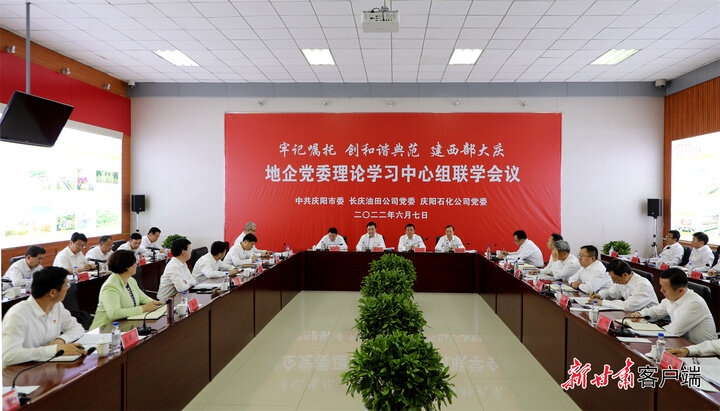慶陽市與長(zhǎng)慶油田公司、慶陽石化公司共同舉行“牢記囑托 創(chuàng)和諧典范 建西部大慶”地企黨委理論學(xué)習(xí)中心組聯(lián)學(xué)會(huì)議。張昶昶 攝