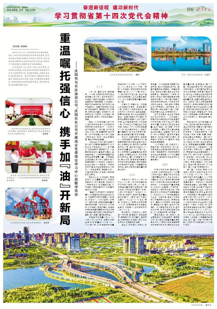 13年后的同一天,在同一地點(diǎn),慶陽市委、長(zhǎng)慶油田公司黨委、慶陽石化公司黨委以黨委理論學(xué)習(xí)中心組聯(lián)學(xué)的方式,重溫殷切囑托,回顧奮進(jìn)歷程,展望美好未來。通過學(xué)習(xí)聯(lián)辦、思想聯(lián)動(dòng)、資源聯(lián)享,推動(dòng)地企各方完整、準(zhǔn)確、全面貫徹新發(fā)展理念,為新時(shí)期地企共同建設(shè)革命老區(qū)、共同創(chuàng)造美好未來凝聚智慧和力量。