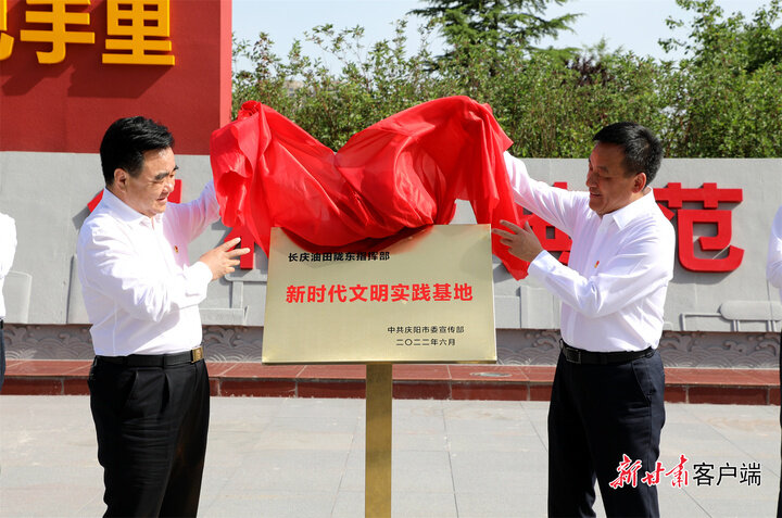 慶陽市、長(zhǎng)慶油田公司共建共享的“新時(shí)代文明實(shí)踐基地”——長(zhǎng)慶油田隴東指揮部新時(shí)代文明實(shí)踐基地揭牌。張昶昶 攝