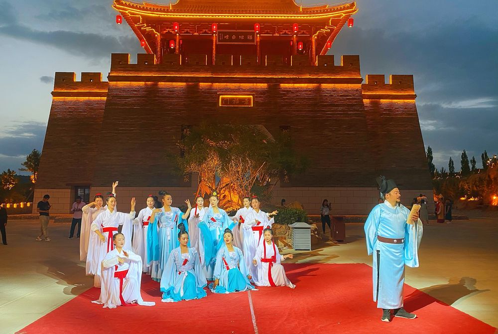 在環(huán)州故城正常開(kāi)園期間,每天都有精彩絕倫的文化演藝活動(dòng),可這些演藝,不僅僅是單純的唱歌、舞蹈。不論是范仲淹出巡、大鍋羊肉開(kāi)鍋式、龍泉疊水水上演藝等穿越演藝,或是道情皮影和秦腔經(jīng)典劇目展演,還是組織的各類大型文藝匯演,都融入了環(huán)縣的紅色文化、歷史文化、非遺文化等多重文化元素。