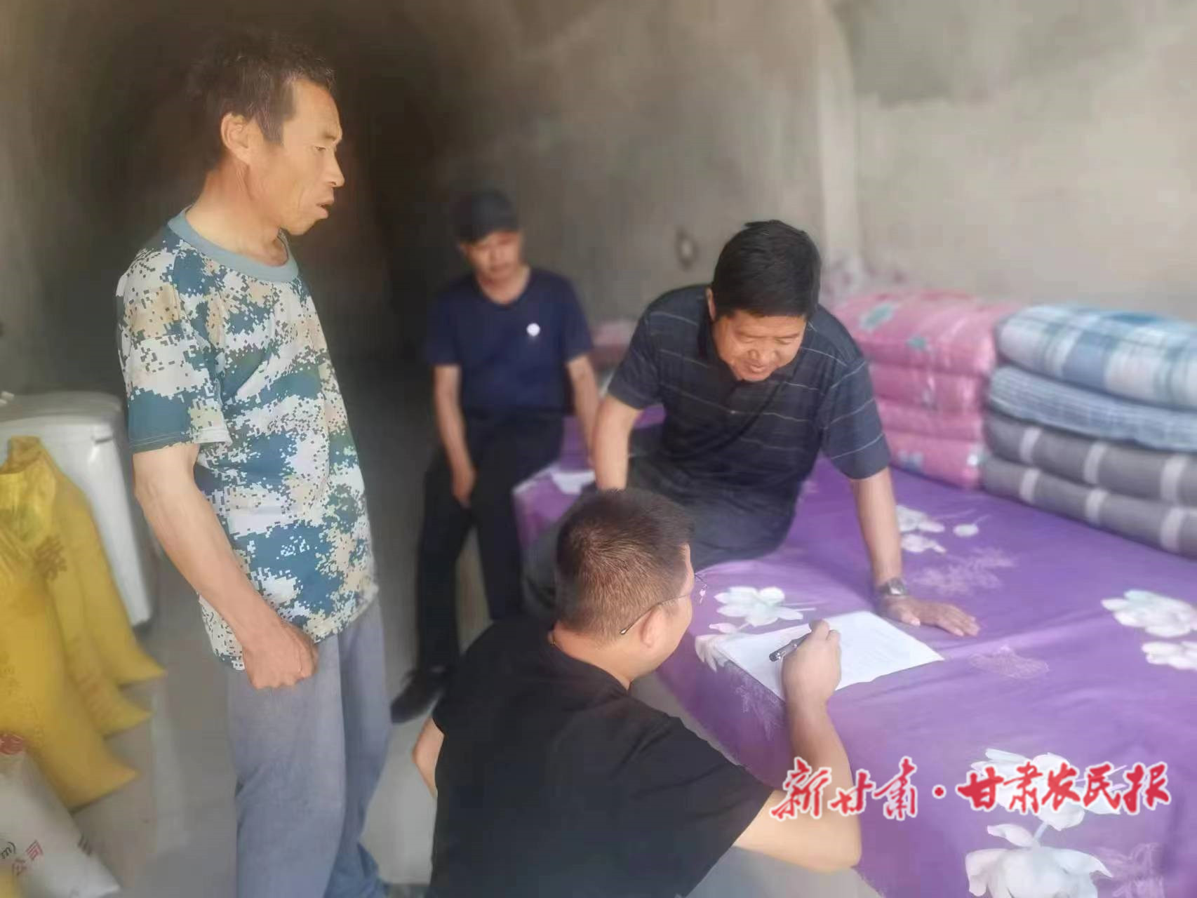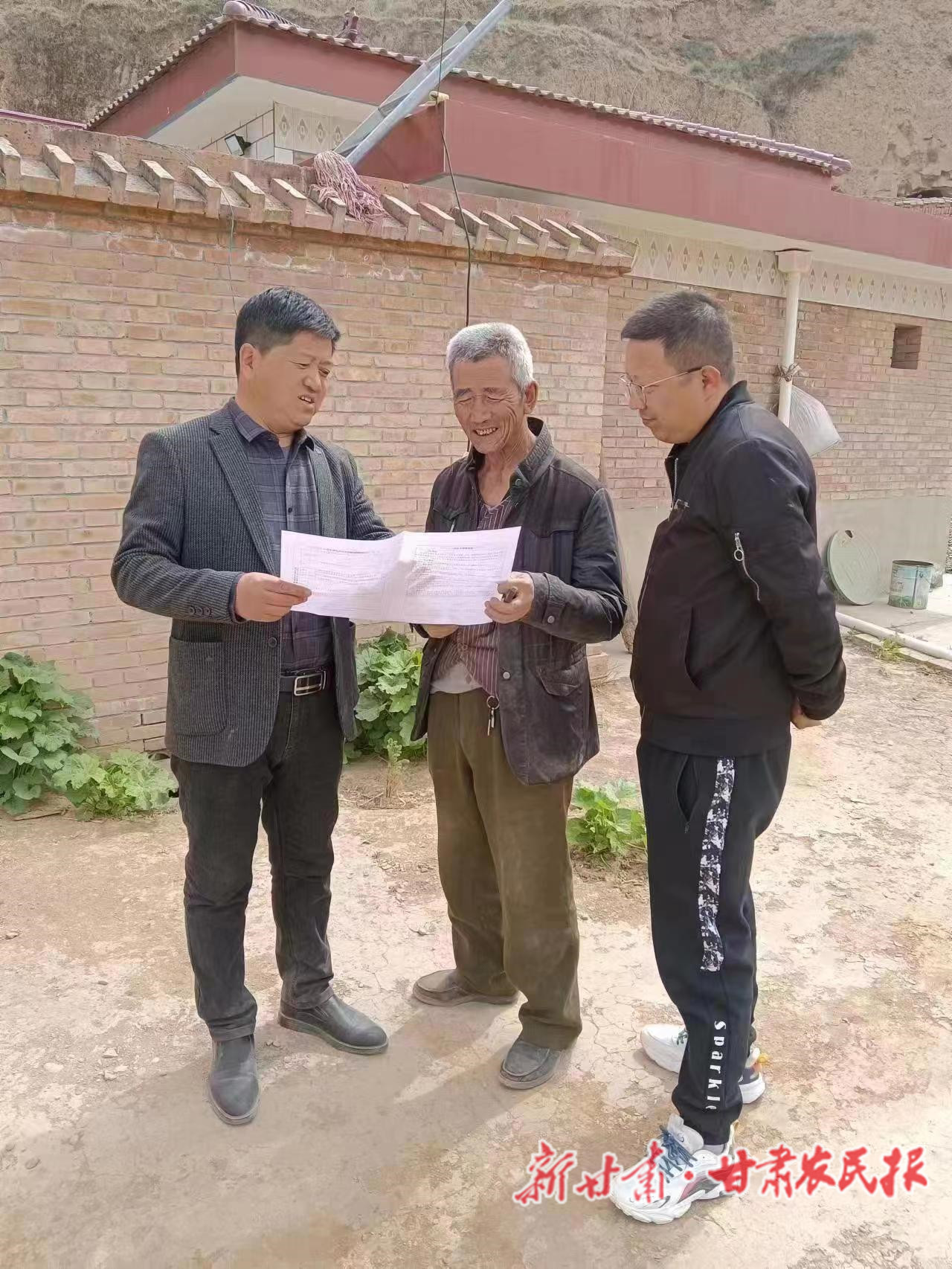 任廷樓(左一)帶領(lǐng)駐村工作隊(duì)員深入農(nóng)戶家簽訂白瓜子種植合同。新甘肅·甘肅農(nóng)民報(bào)通訊員田曉博 攝