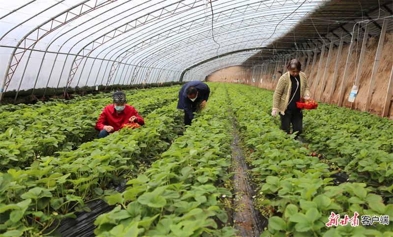 慶陽萬潤園種養(yǎng)殖農民專業(yè)合作社種植戶采摘草莓。