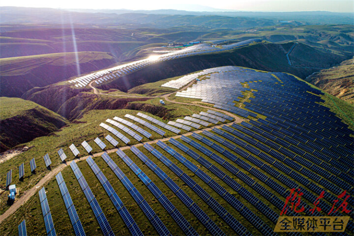 放眼隴東大地,一排排藍(lán)色光伏板整齊排列,在陽光照耀下熠熠生輝……