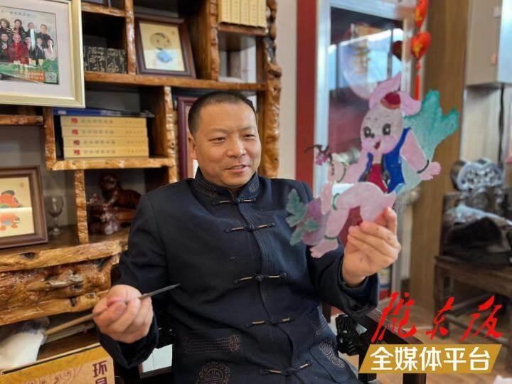 慶陽網訊(記者 南力 趙丹 見習記者 王華)冬日的陽光透過環(huán)州故城道情皮影館的窗欞,將色彩斑斕的皮影投影在了墻壁上。兔年春節(jié)到來之前,環(huán)縣皮影雕刻技藝傳承人張治文創(chuàng)作皮影元素作品,喜迎癸卯兔年的到來。