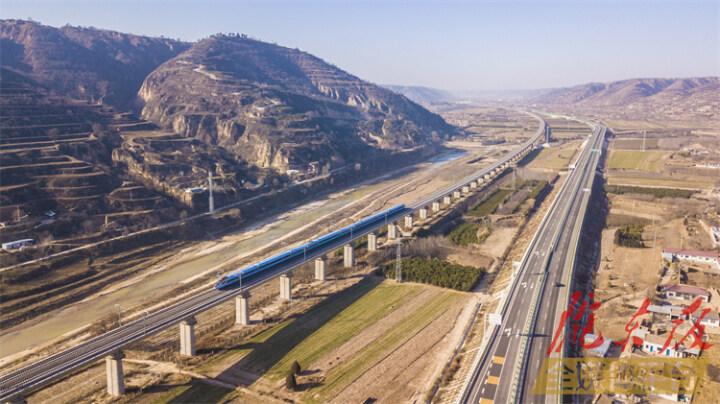 慶城縣卅鋪鎮(zhèn)境內(nèi)高鐵與高速相伴而行(資料圖)。陳飛 攝