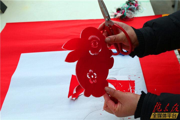 慶陽網(wǎng)訊(記者 路世玲)一張紅紙、一把剪刀,一雙巧手上下翻飛,紙屑落地,紋案漸顯……1月13日,在合水縣西華池鎮(zhèn)唐旗村一個農(nóng)家院落里,張雪峰正在為CCTV-17農(nóng)業(yè)農(nóng)村頻道錄制一期春節(jié)民俗節(jié)目?!斑@個是玉兔納財,今年是兔年,剪一些可愛的小兔子,過年貼上,特別應(yīng)景。”不一會兒功夫,一只可愛的小兔子就“躍然紙上”。