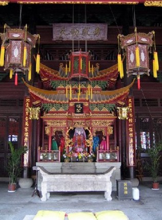 曹娥廟中供奉的曹娥娘娘。這似乎是古代中國的一項傳統(tǒng),一個具備某種美德的人,即便生前并不幸福,死后亦可作為神靈享受人們永遠的紀念。曹娥便是因她的孝心,使無數(shù)后人為之感動。也有人認為,端午節(jié)便是紀念孝女曹娥的日子。