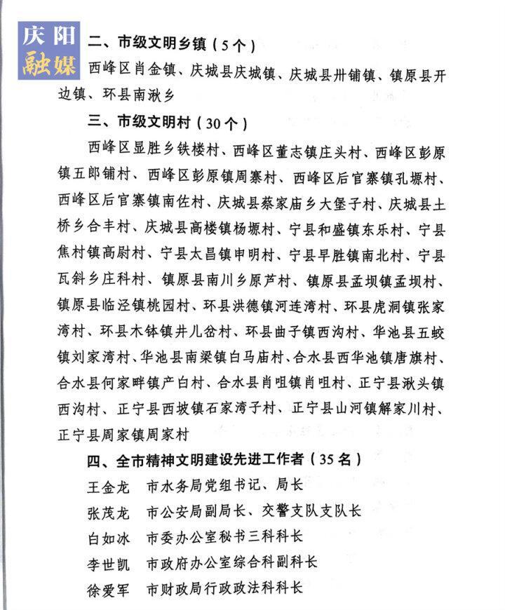 會(huì)上,市委、市政府命名表彰了第二十八批市級(jí)精神文明建設(shè)先進(jìn)集體、先進(jìn)工作者和第三屆市級(jí)文明校園、第三屆慶陽(yáng)市文明家庭。