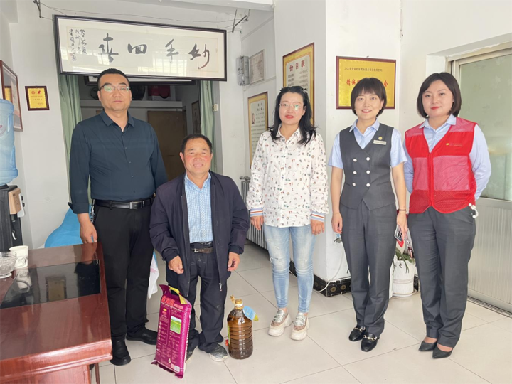 西峰區(qū)委宣傳部、瑞信村鎮(zhèn)銀行相關負責人慰問“甘肅省文明家庭”李自立家庭。