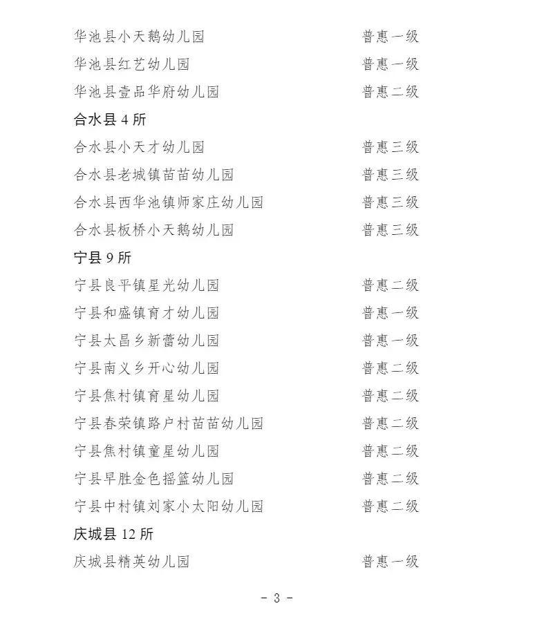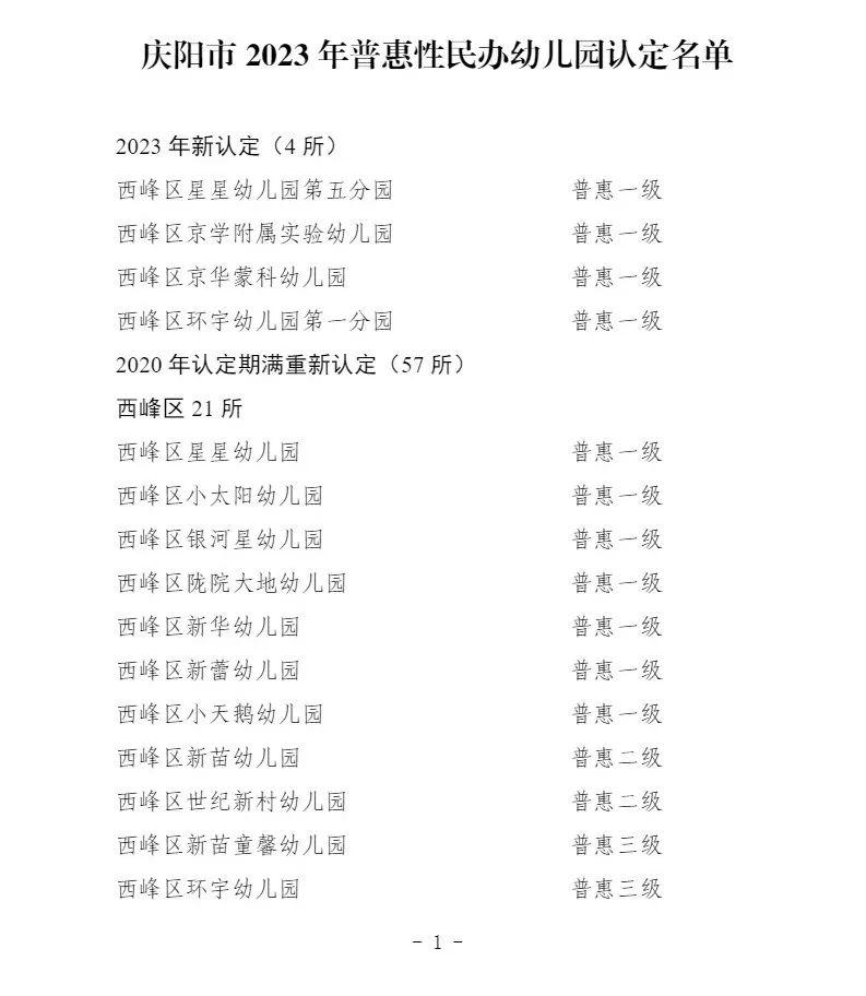 按照甘肅省教育廳、發(fā)展和改革委、財政廳《甘肅省普惠性民辦幼兒園認定扶持管理辦法(2020年修訂)》(甘教基二〔2020〕9號),慶陽市教育局、發(fā)展和改革委、財政局《慶陽市普惠性民辦幼兒園認定扶持管理實施意見》(慶市教發(fā)〔2022〕56號)、《關于做好2022年普惠性民辦幼兒園認定和上報工作的通知》(慶市教發(fā)〔2022〕15號)精神,經各縣(區(qū))教育局初評申報,市教育局抽評復審,擬推薦西峰區(qū)星星幼兒園第五分園等61所民辦幼兒園為2023年慶陽市普惠性民辦幼兒園?,F予以公示,歡迎社會各界監(jiān)督。