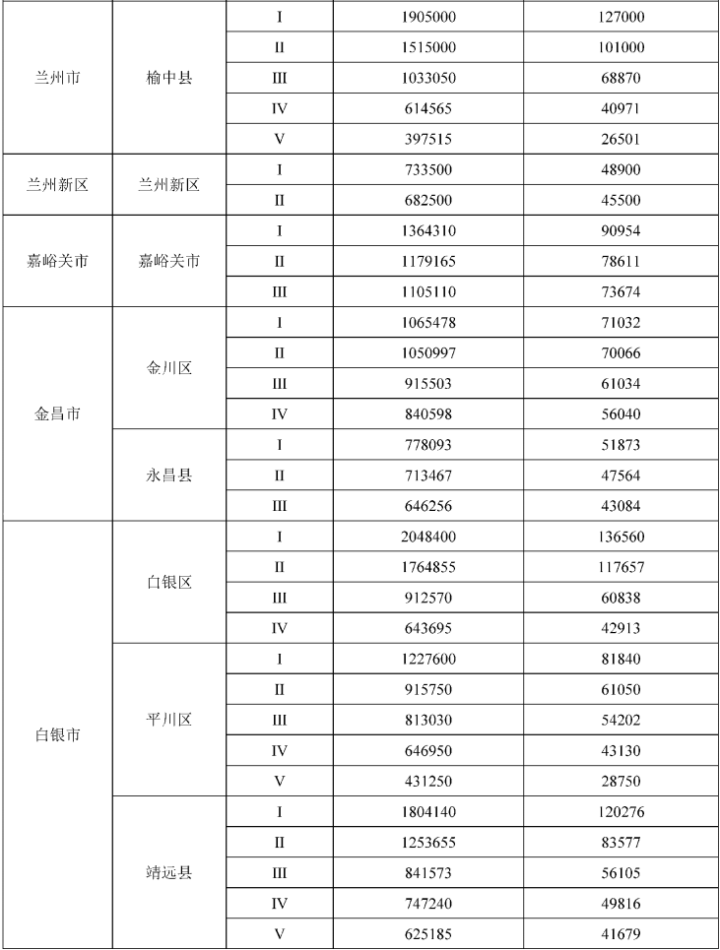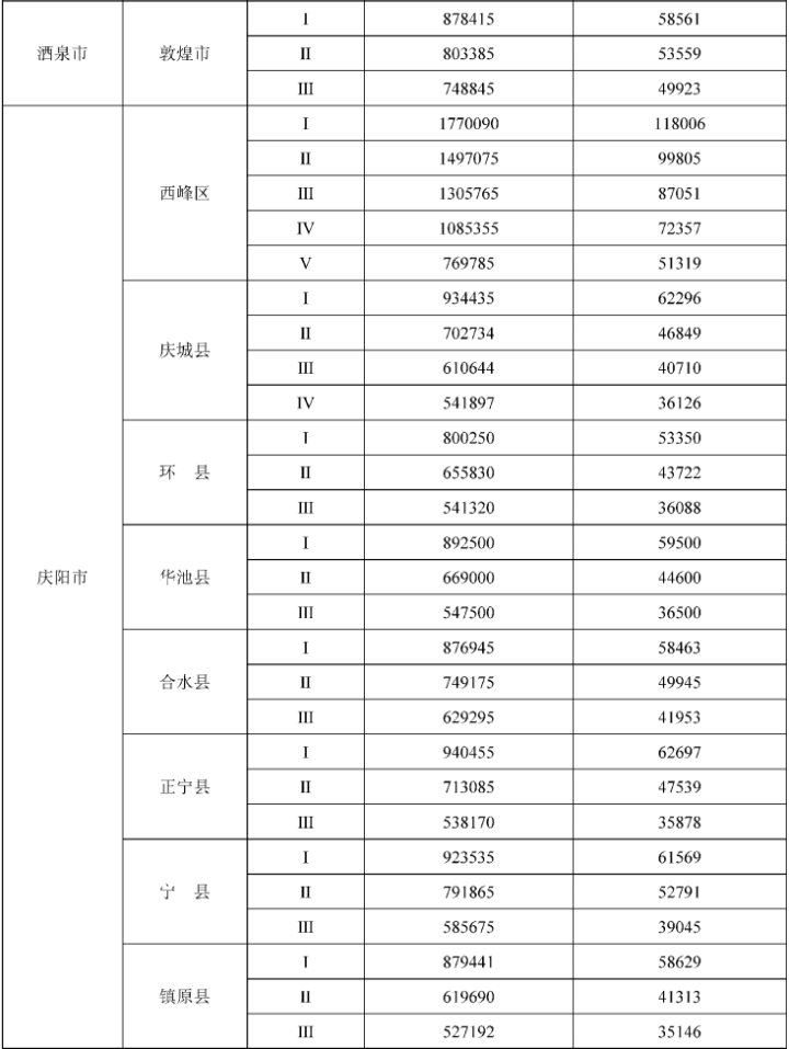 甘肅省征收農(nóng)用地區(qū)片綜合地價標準