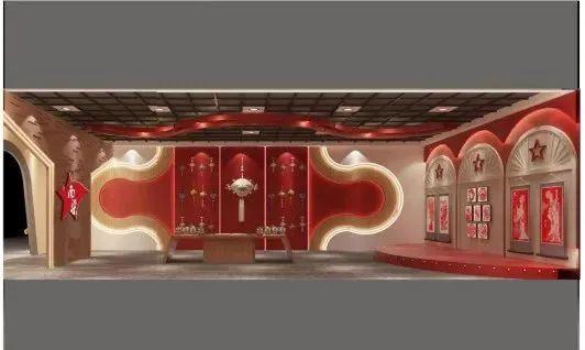 鎮(zhèn)原展廳門廳設(shè)計(jì)紅色剪紙鏤空造型