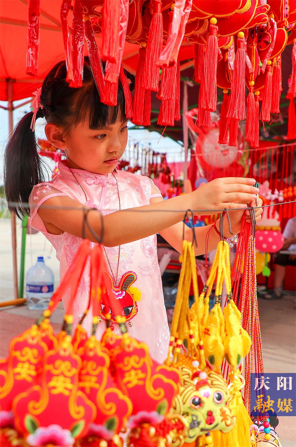 2015年6月17日,第十三屆慶陽香包民俗文化節(jié)上,孩子被香包吸引。慶陽融媒記者 陳飛 攝