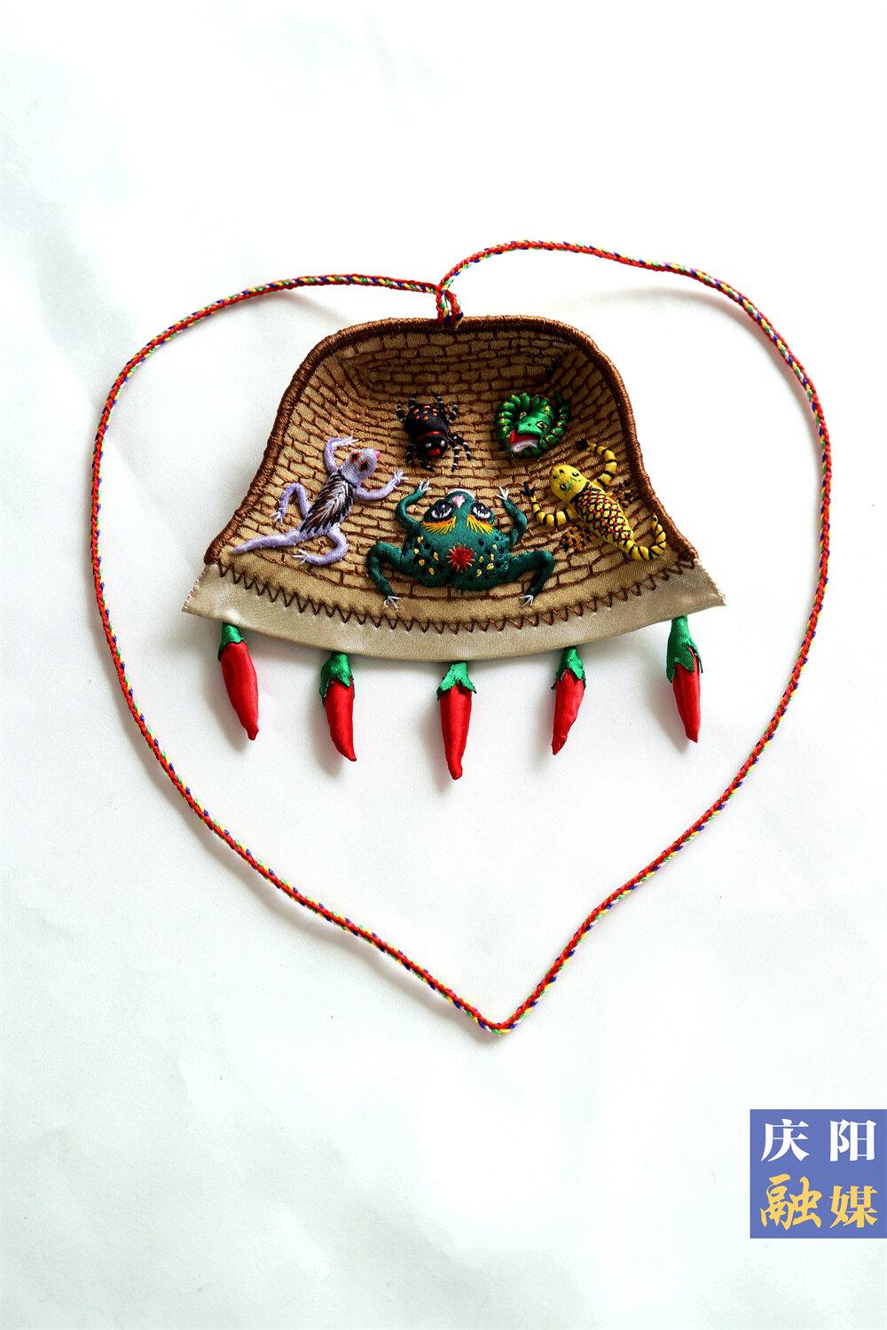 慶陽五絕之首香包,是慶陽勞動婦女巧手繡制的具有悠久歷史淵源的刺繡珍品,以獨具匠心的藝術(shù)構(gòu)思、精湛嫻熟的刺繡工藝、色彩斑斕的七彩絲線、清新濃郁的天然香料手工精制而成。分為頭戴型、肩臥型和胸掛型等。千姿百態(tài)的慶陽香包造型豐富、圖案精美、淳樸雅致。表達(dá)著人們的圖騰崇拜、趨吉避邪,祈求福壽平安、子孫繁衍、愛情幸福,以及對美好生活的憧憬與向往。