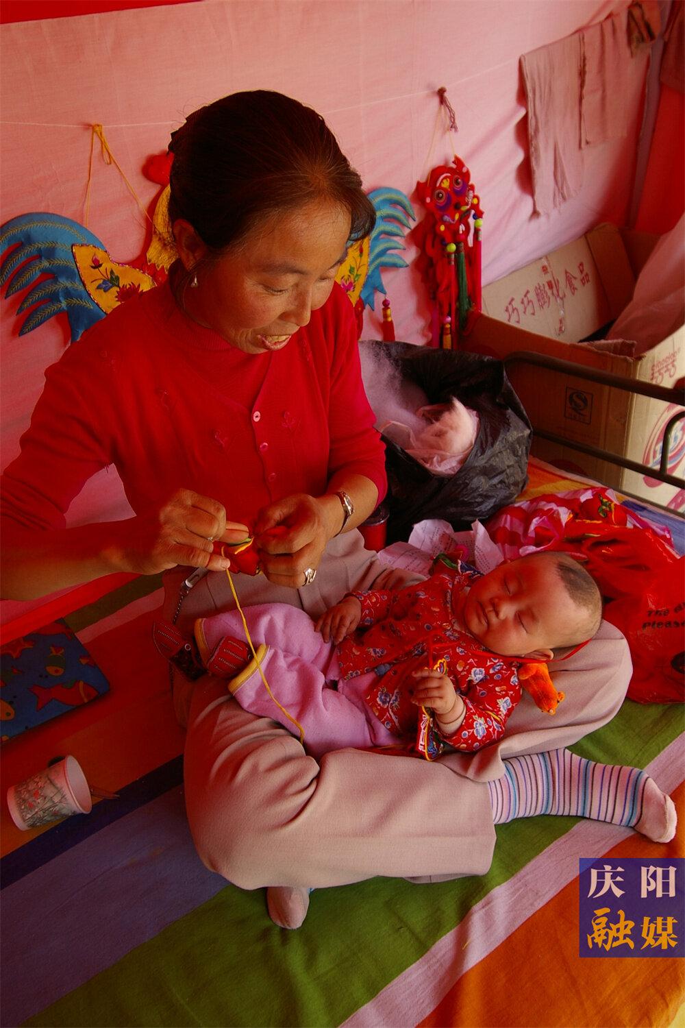 慶陽婦女邊帶娃邊繡“絀絀”。 通訊員 李建榮 攝