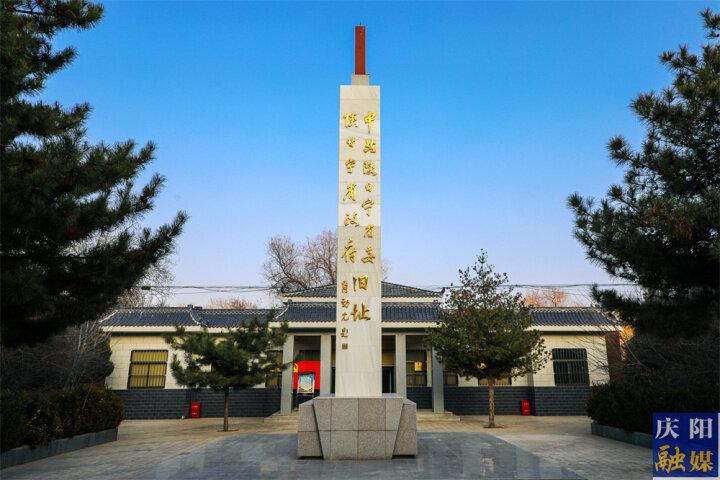 陜甘寧省委、省政府舊址紀(jì)念碑(2021年3月8日攝)。慶陽(yáng)融媒記者 俄少飛 攝