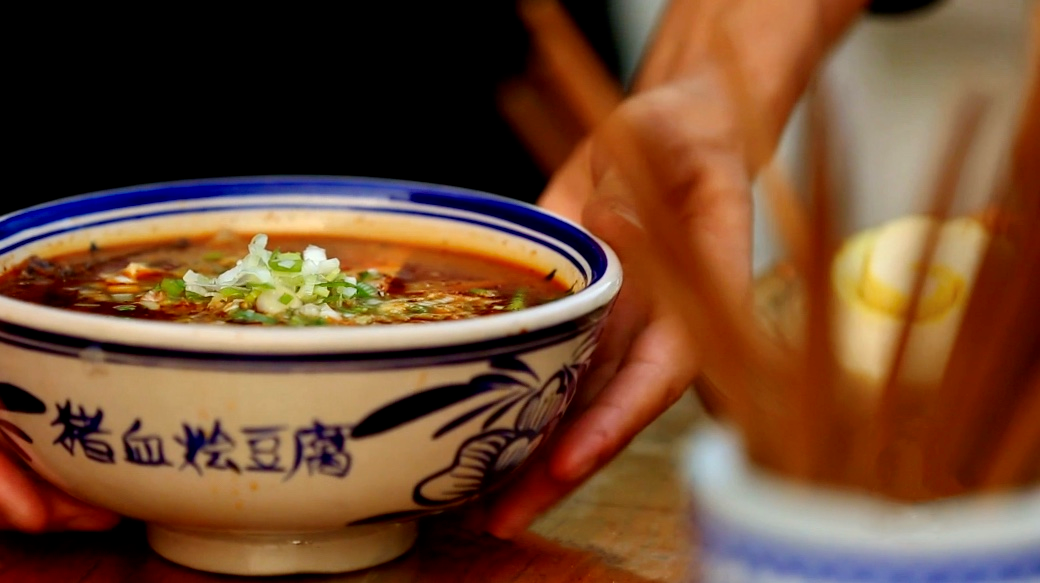 豬血燴豆腐紅艷艷的是油湯,綠油油的是菠菜,血片軟嫩爽滑,出鍋后再撒上一撮蔥花,口感飽滿,回味悠長(zhǎng)。