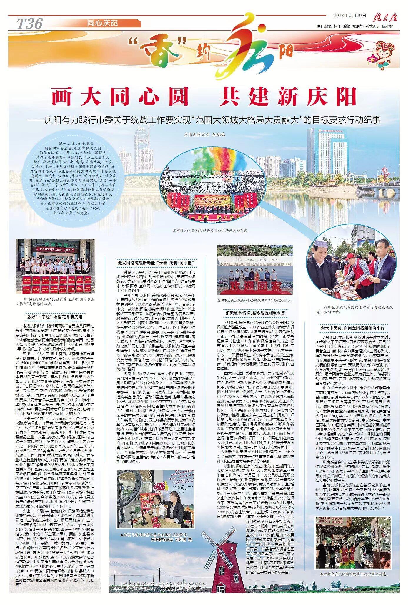 慶陽網(wǎng)訊(慶陽融媒記者 鞏曉鳴)統(tǒng)一戰(zhàn)線,是黨克敵制勝的重要法寶,也是黨執(zhí)政興國的強(qiáng)大法寶。去年以來,慶陽統(tǒng)一戰(zhàn)線堅持以習(xí)近平新時代中國特色社會主義思想為指引,全面貫徹落實中央、省委、市委統(tǒng)戰(zhàn)工作會議精神,堅持以大統(tǒng)戰(zhàn)增進(jìn)大團(tuán)結(jié)大聯(lián)合為主線,著力實現(xiàn)市委及市委主要領(lǐng)導(dǎo)提出的統(tǒng)戰(zhàn)工作要實現(xiàn)“范圍大、領(lǐng)域大、格局大、貢獻(xiàn)大”的目標(biāo)要求,結(jié)合實際,確定“136”統(tǒng)戰(zhàn)工作的高質(zhì)量發(fā)展思路(夯實“一個基礎(chǔ)”、鍛造“三個品牌”、做好“六項工作”),因地施策夯基礎(chǔ)、創(chuàng)新載體建平臺,統(tǒng)籌推進(jìn)統(tǒng)戰(zhàn)工作擴(kuò)面提質(zhì)增效樹品牌,突出在民族團(tuán)結(jié)進(jìn)步、實施網(wǎng)絡(luò)統(tǒng)戰(zhàn)和新鄉(xiāng)賢統(tǒng)戰(zhàn)、聚合全國慶商開展招商引資等方面凝聚磅礴的統(tǒng)戰(zhàn)合力,在助力全市經(jīng)濟(jì)社會高質(zhì)量發(fā)展中展示了統(tǒng)戰(zhàn)新作為,凝聚了新力量。