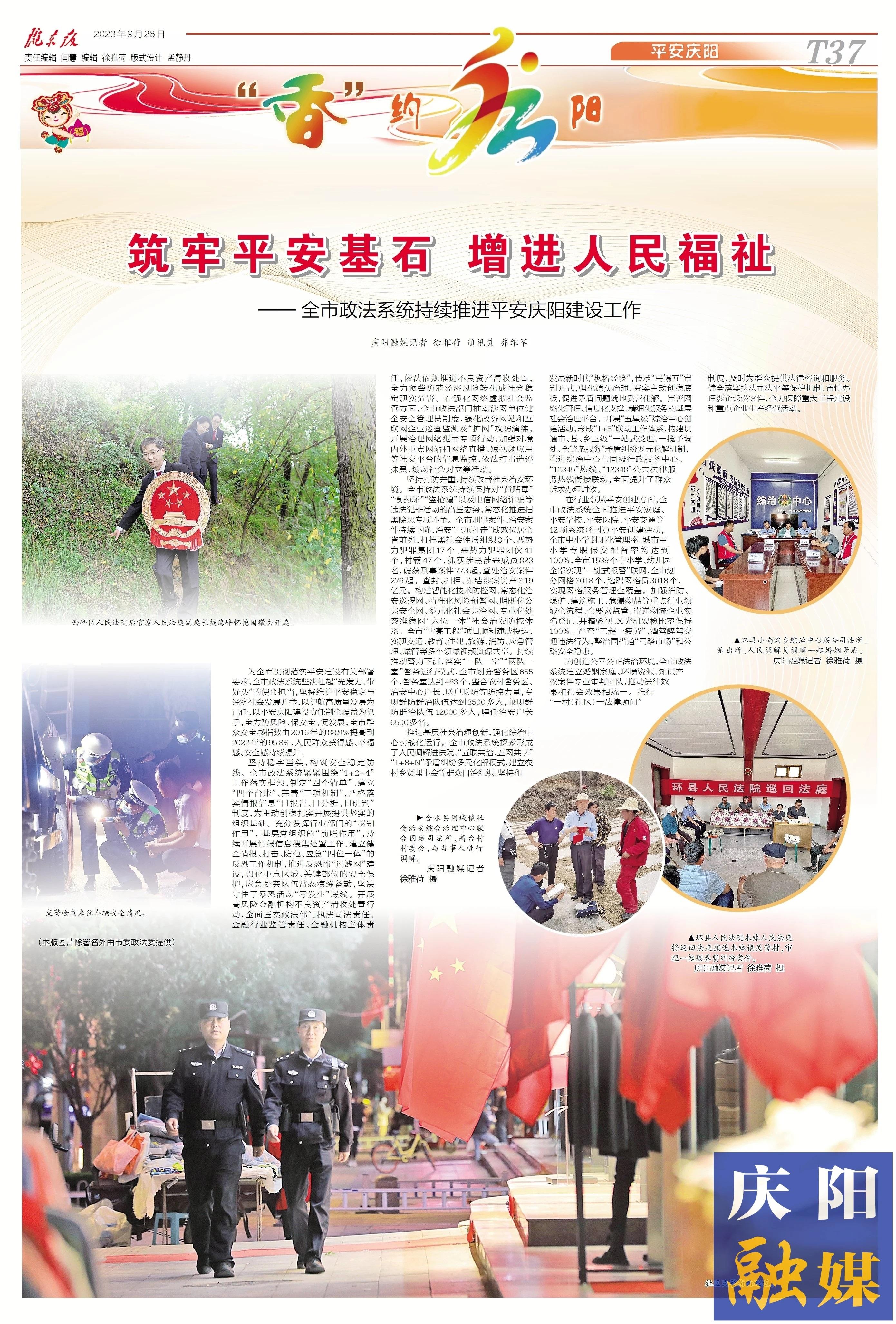 慶陽網(wǎng)訊(慶陽融媒記者 徐雅荷 通訊員 喬維軍)為全面貫徹落實平安建設有關部署要求,全市政法系統(tǒng)堅決扛起“先發(fā)力、帶好頭”的使命擔當,堅持維護平安穩(wěn)定與經(jīng)濟社會發(fā)展并舉,以護航高質量發(fā)展為己任,以平安慶陽建設責任制全覆蓋為抓手,全力防風險、保安全、促發(fā)展,全市群眾安全感指數(shù)由2016年的88.9%提高到2022年的95.8%,人民群眾獲得感、幸福感、安全感持續(xù)提升。