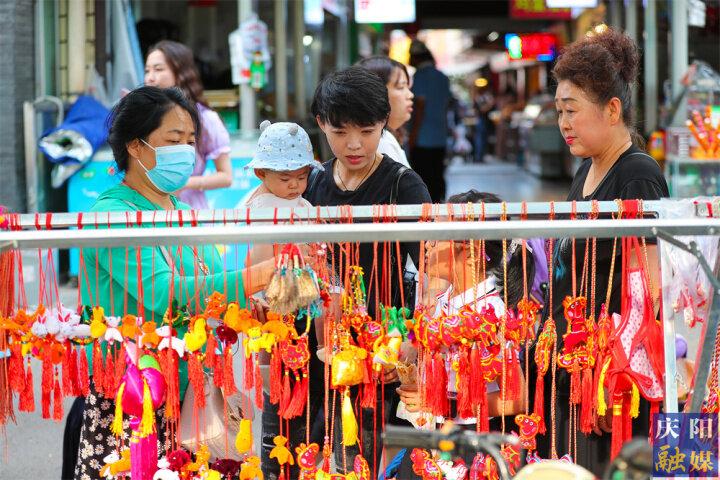 市民選購香包。慶陽融媒記者 陳飛 攝