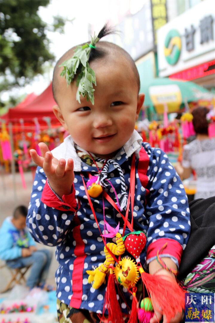 扎艾草、戴香包,歡度端午佳節(jié)的慶陽小孩。慶陽融媒特約攝影 李建琪 攝