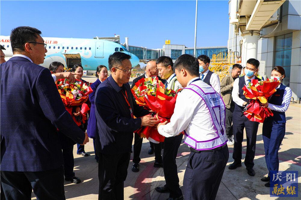 飛機(jī)降落后,隨即舉行了首航儀式。慶陽市政府有關(guān)負(fù)責(zé)同志向機(jī)組人員獻(xiàn)上鮮花表示慰問,慶陽市發(fā)改委、市財(cái)政局、市交通運(yùn)輸局、市文體廣電旅游局、慶陽機(jī)場公司相關(guān)負(fù)責(zé)人參加首航儀式。