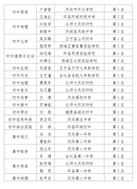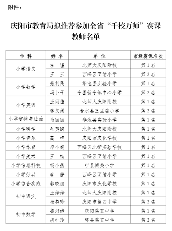 附件:慶陽市教育局?jǐn)M推薦參加全省“千校萬師”賽課教師名單
