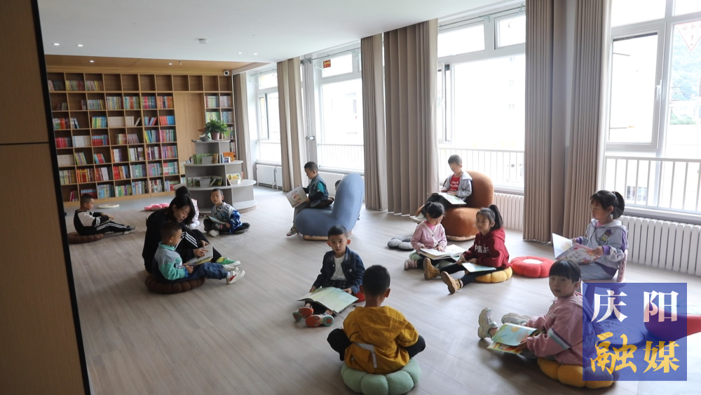 華池縣新建的實(shí)驗(yàn)幼兒園師生共讀繪本。