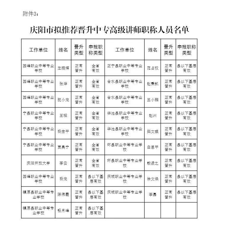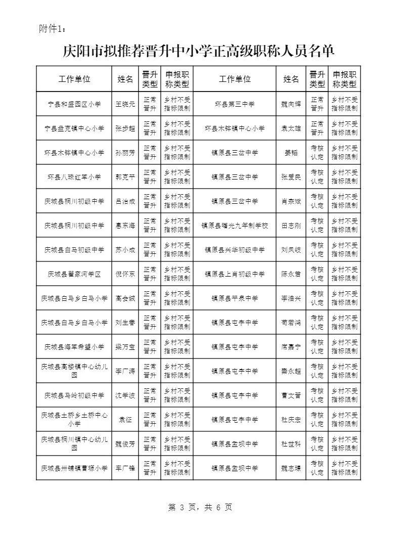 3.慶陽(yáng)市擬推薦晉升中小學(xué)正高級(jí)職稱人員名單