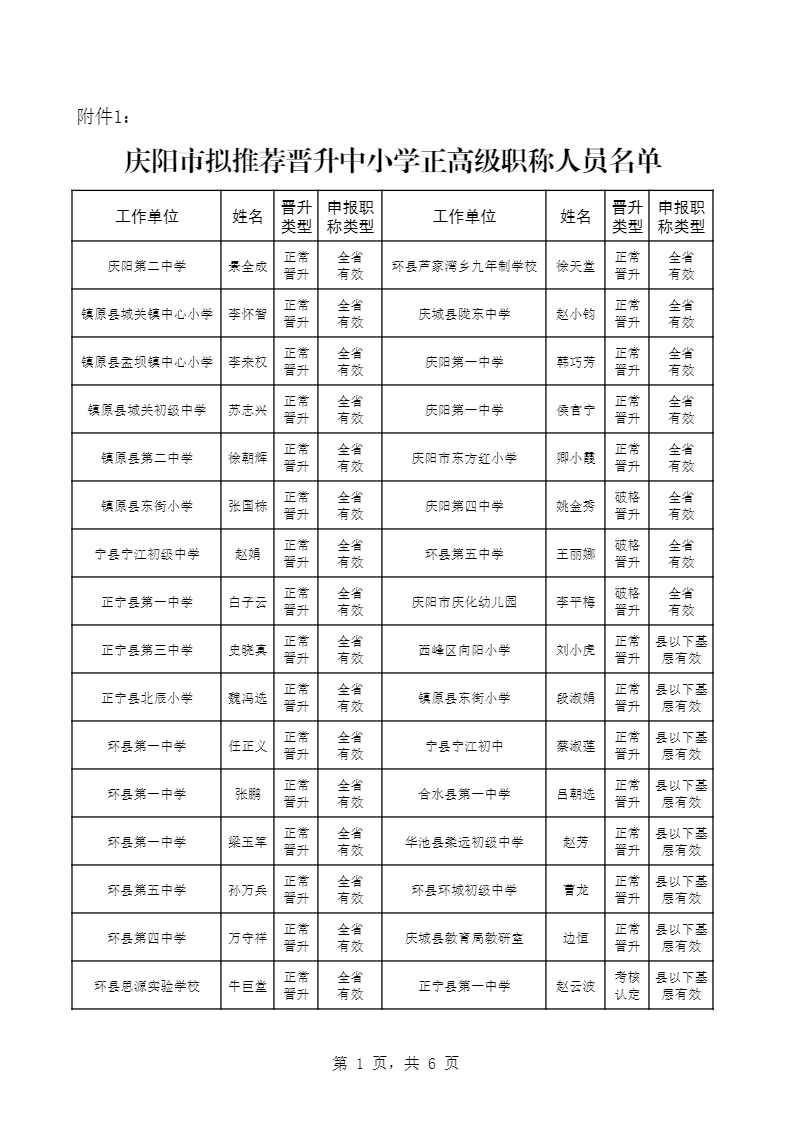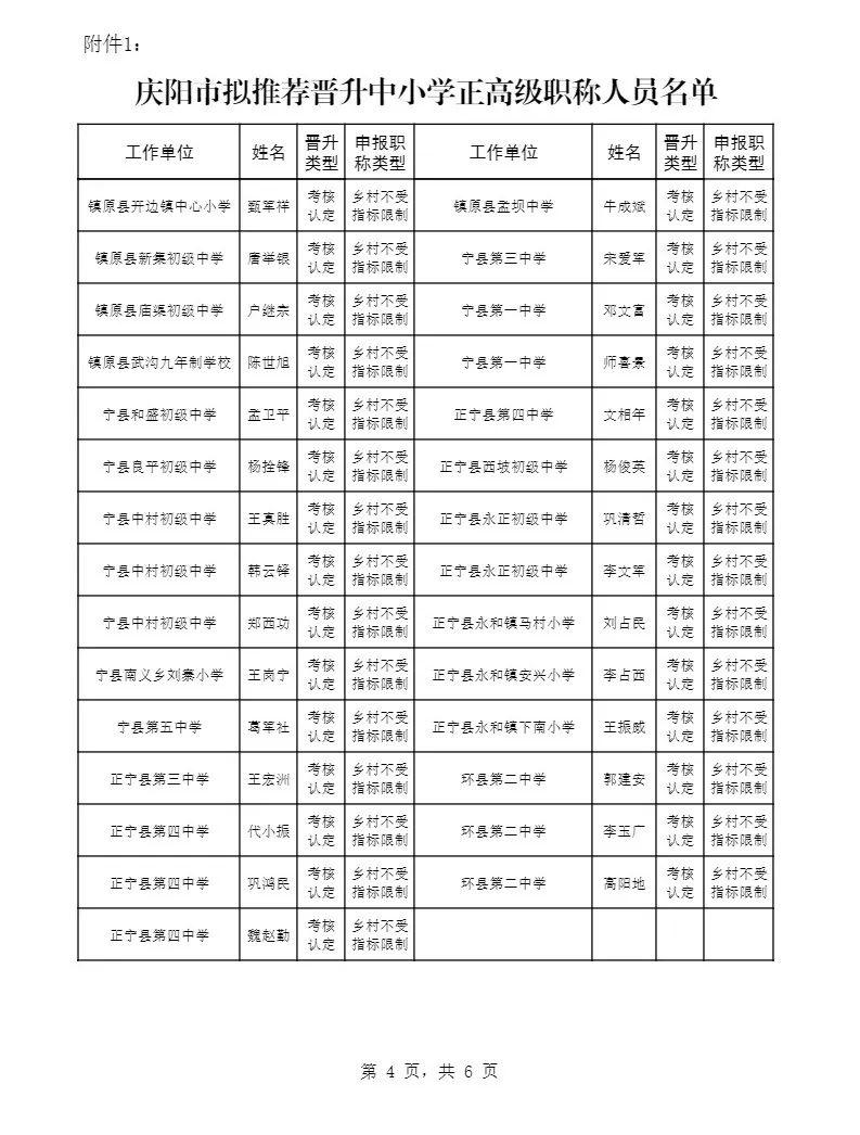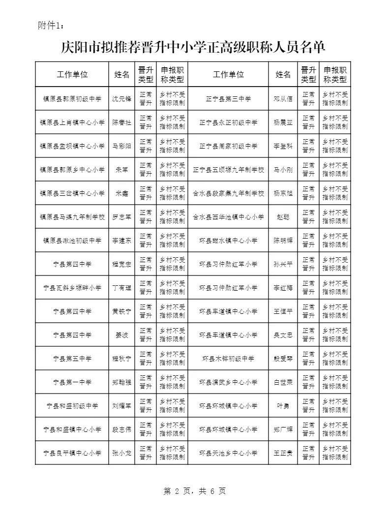 1.慶陽(yáng)市擬推薦晉升中小學(xué)正高級(jí)職稱人員名單