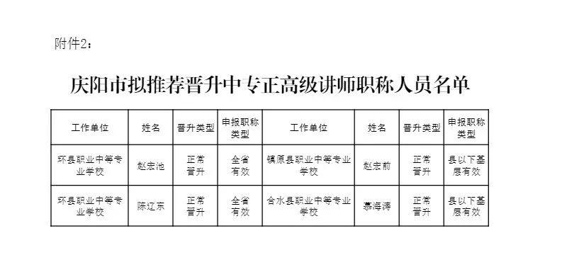 2.慶陽(yáng)市擬推薦晉升中專正高級(jí)講師職稱人員名單