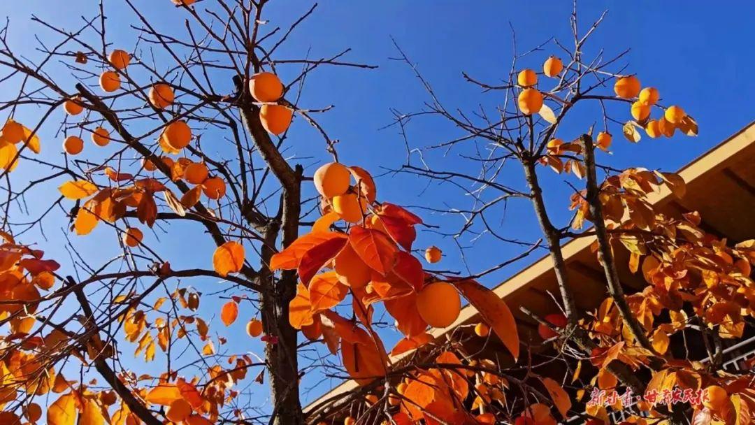 在慶陽,關(guān)于初冬的記憶,除了滿地的落葉,一定也有老家門前的那一樹柿子。冬季里的柿子樹,褪盡綠葉,黃澄澄的橙子掛滿裸露的枝頭,像一個(gè)個(gè)燈籠,在藍(lán)天的映襯下分外靚麗醒目。