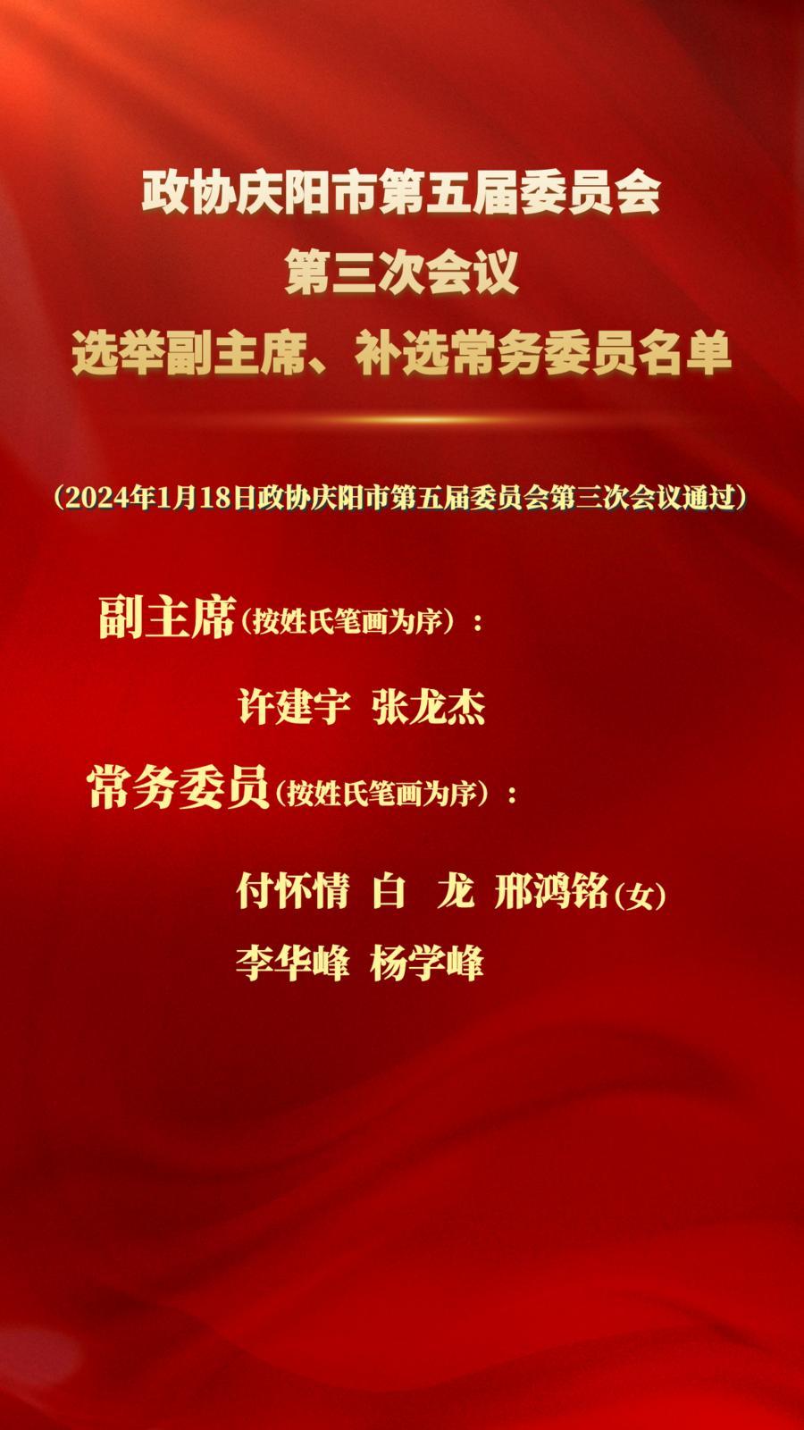政協(xié)慶陽市第五屆委員會第三次會議選舉副主席、補選常務(wù)委員名單